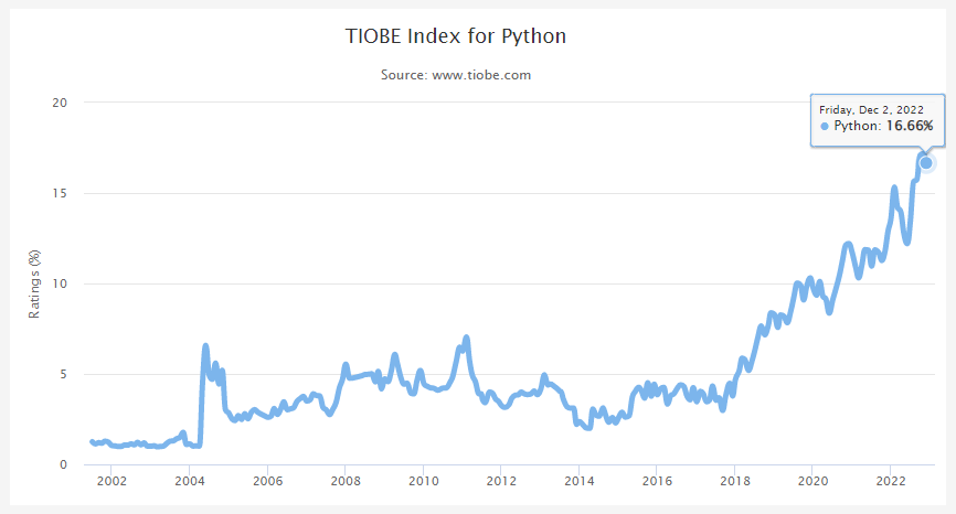 2001년 이후 3위 안을 지키던 JAVA가 C++의 인기 상승으로 4위에 랭크된 것이 2022년의 가장 큰 징이네요.