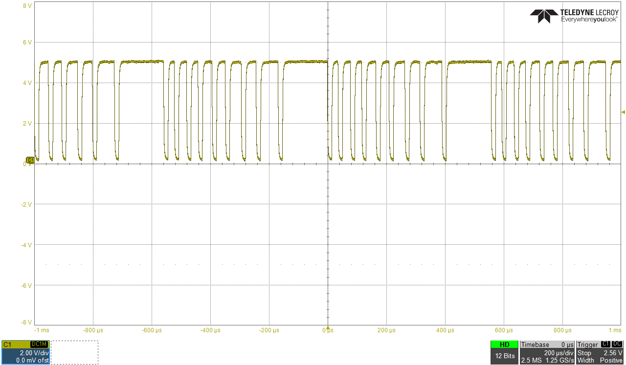 실제 SENT 통신이 될 때 Frame은 아래 이미지와 같이 Delay 없이 붙어서 출력됩니다. (Pause Pulse가 없을 때)