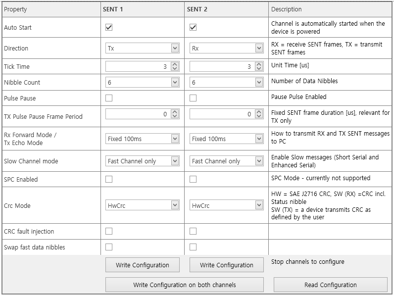 > SENT 관련 특별한 내용은 없는데 주의 사항이 있습니다!