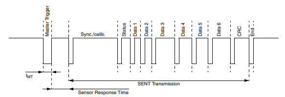 SPC에서는 Master Trigger를 모니터링 하고 있다가 자신의 ID가 불리면 한개의 SENT Frame을 전송하면 됩니다.